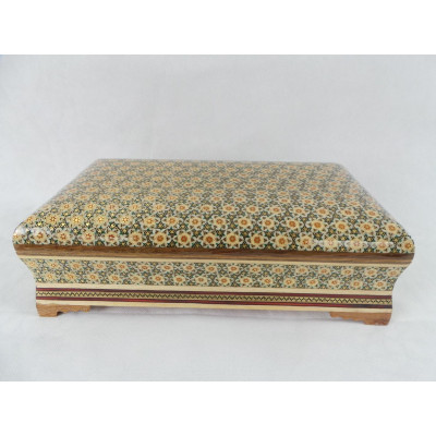 This privileged Khatam marquetry tissue box has several types of Khatam. This beautiful Khatam with an Embossed brown frame in the shape of a golden star is mixed with classic Khatam design around it. The black and red Khatam around the frame makes it unique. The inside of the box and Toothed bases ..